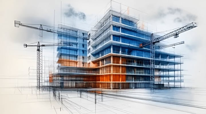 This timelapse illustrates the evolution of a commercial office building from an initial sketch to a fully realized architectural rendering. As the design develops, structure, materials, glazing, and spatial relationships are carefully refined and placed within an active urban setting.